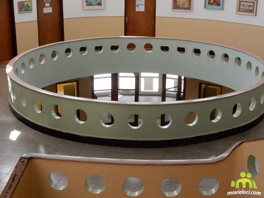 Oblíbená vstupní hala školy zvaná Kolotoč. Naproti je ředitelna a sborovna. (Toto foto není z filmu. Autor ladak1)