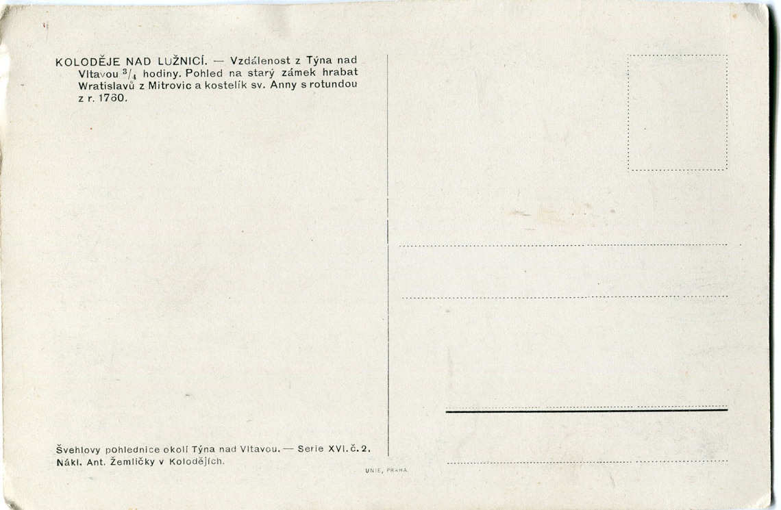 Kolodějský zámek Koloděje nad Lužnicí – vzdálenost z Týna nad Vltavou 3/4 hodiny. Pohled na starý zámek hrabat Wratislavů z Mitrovic a kostelík sv. Anny s rotundou z r. 1780. Související Zámek Koloděje nad Lužnicí Zámek a Villa Koloděje Koloděje n. Luž. - Zámek hrabat Wratislavů z Mitrovic Napsat komentář Zrušit odpověď na komentářVaše e-mailová adresa nebude zveřejněna. Vyžadované informace jsou označeny *Komentář * Jméno * E-mail * Webová stránka Upozornit emailem na navazující komentáře. Můžete se též přihlásit k odběru bez komentování. Δ