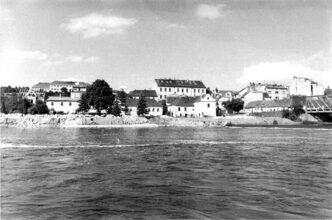 Zahradnictví. Dříve se zde plánovala stavba hotelu, dnes zde stojí 2 rodinné domy. Vlevo dům Mazanců, vpravo Dupalů. Přes řeku vlevo budova …