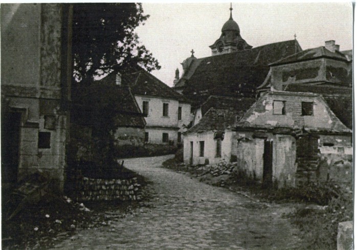 V popředí stojící domy již dnes na parkovišti nenajdeme..
